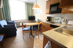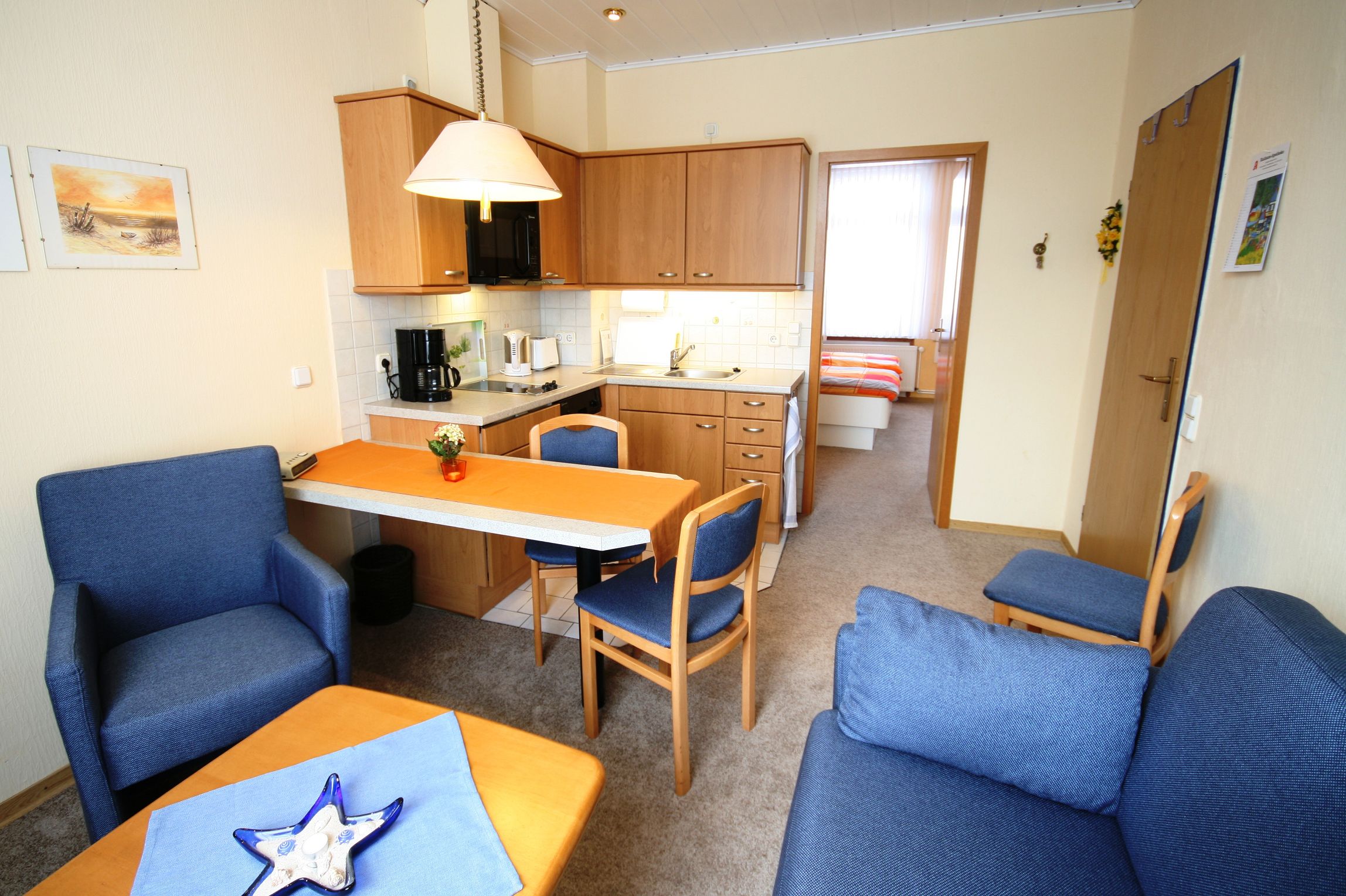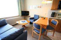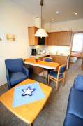 Zur Ausstattung gehören unter anderem: TV mit Kabelempfang, Radiowecker, Geschirrspülmaschine, Ceran-Kochfeld, Mikrowelle, Kaffeemaschine, Toaster, Wasserkocher Bettwäsche, Handtücher, Geschirrtücher und Tischwäsche werden ge- stellt. Abstellfläche für Fahrräder stehen in begrenzter Anzahl am Haus zur Verfügung.